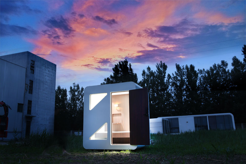 The size is 2.15 * 2.15 * 2.2, with built-in password lock, single bed, exhaust fan, bedside table, garbage can, etc.